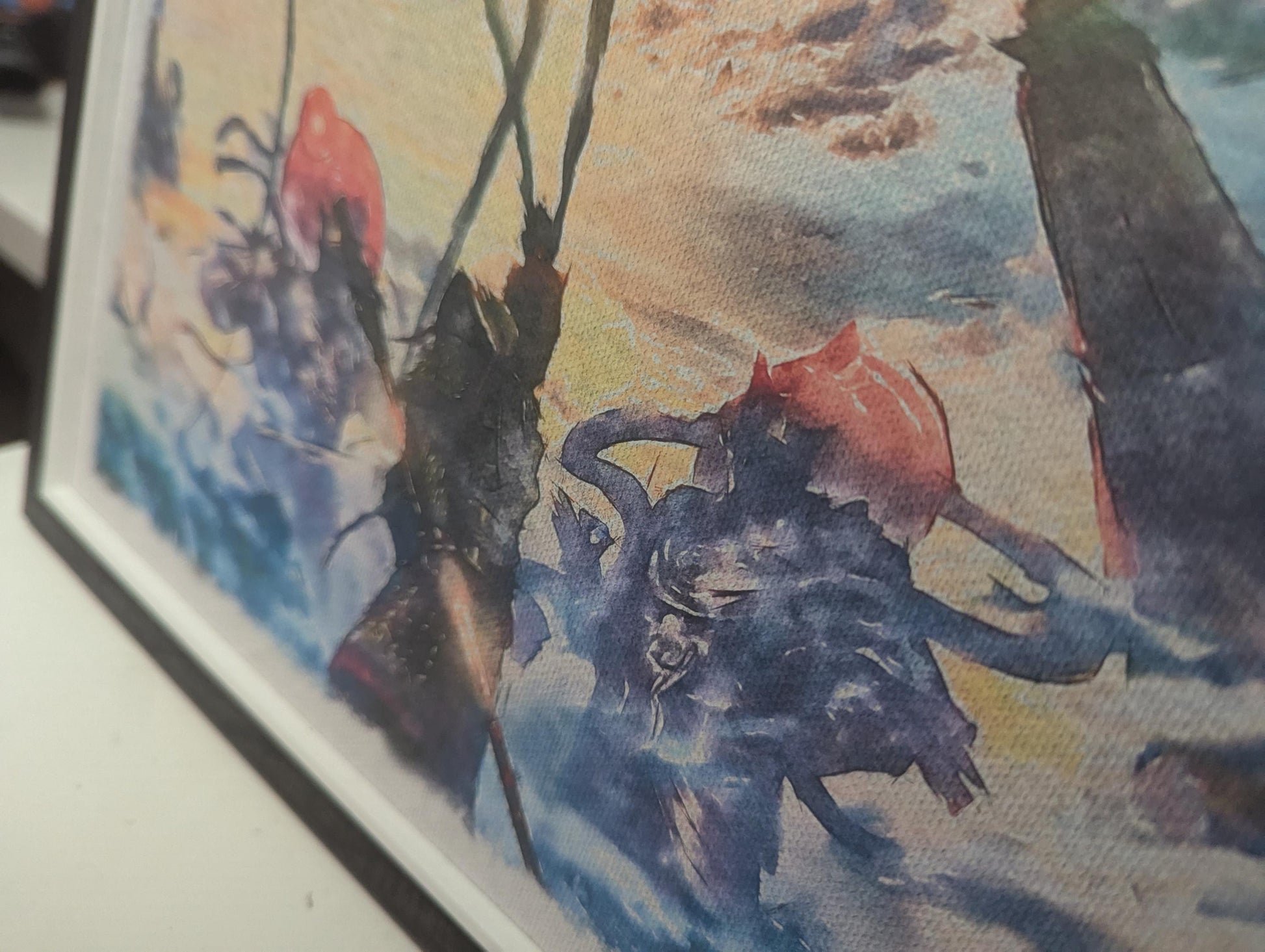 Immerse yourself in the enchanting world of Black Myth: Wukong with our captivating watercolor style print. This stunning artwork is inspired by the game, featuring bright colours and striking visuals.