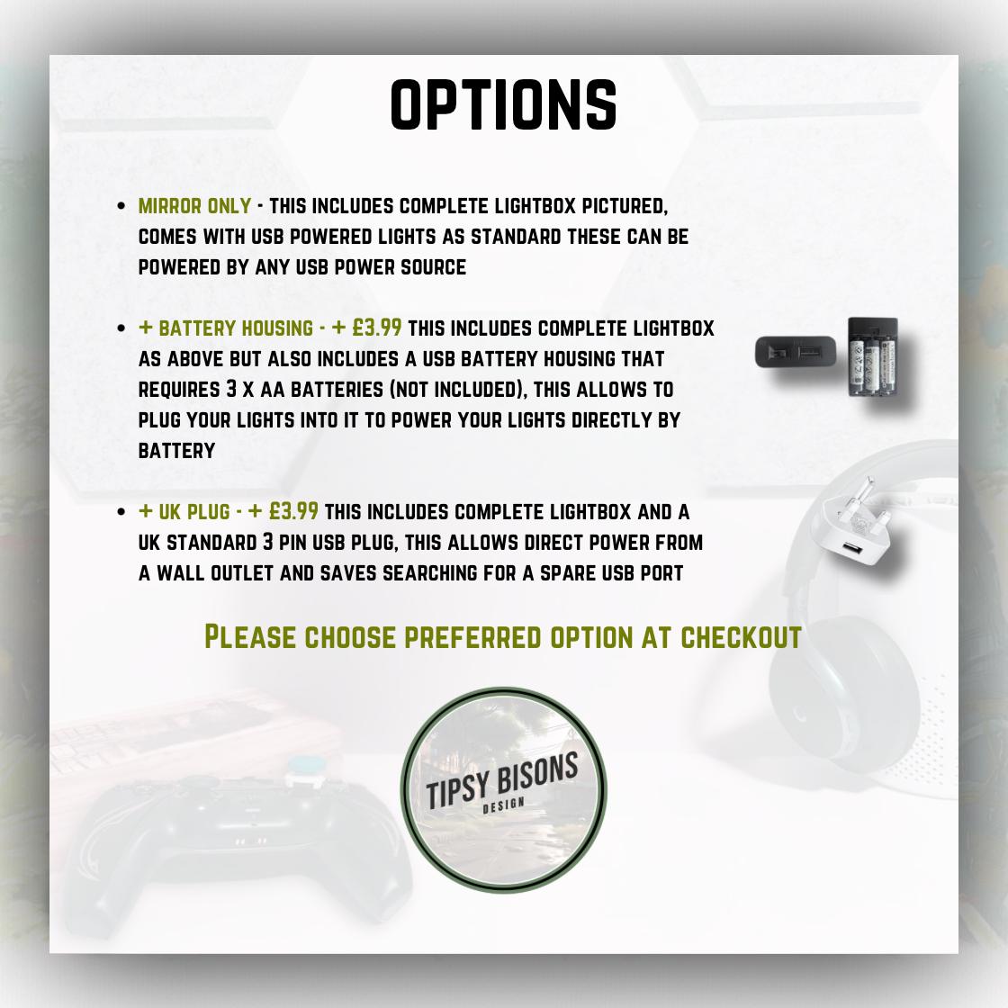 All Frames are custom designed by me, they are laser engraved and hand finished with led lights to provide backlit lighting, slight changes can be made just let me know.